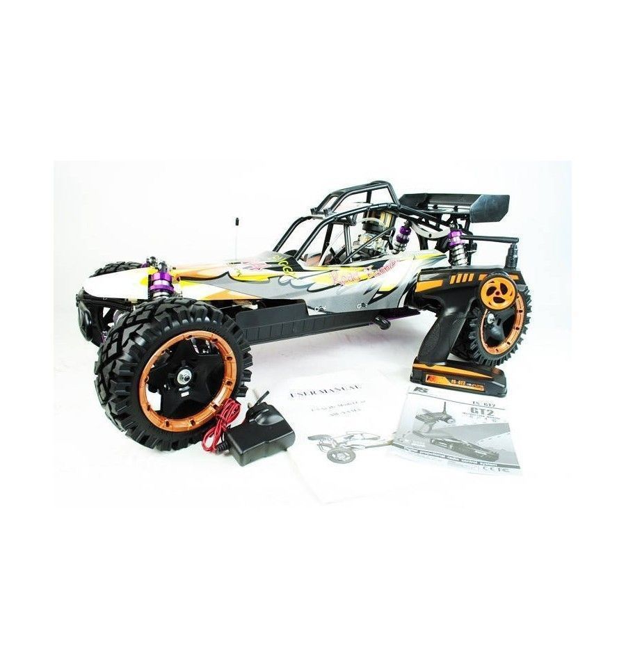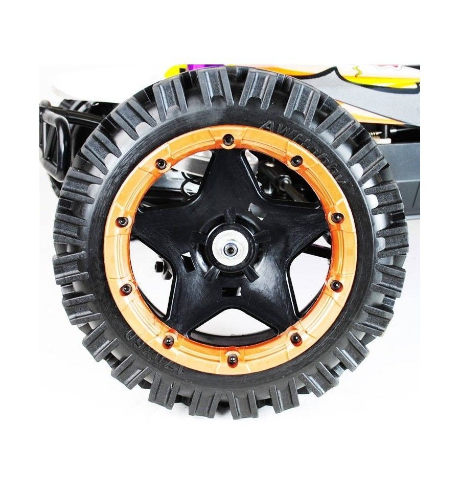 Versión PRO del gran modelo YAMA de AoWei con varias actualizaciones y mejoras para hacerlo aún más rápido, manejable y resistente. Está disponible en dos versiones en las que cambia básicamente la carrocería. El resto de características y novedades es igual para ambos modelos, destacando el nuevo y potente motor de 30cc más grande. También destaca su nuevo chasis (a elegir entre carbono o road runner), sus nuevas ruedas con mejor agarre y rendimiento en cualquier terreno, o sus amortiguadores y brazos de suspensión de aluminio en diferentes colores. Este YAMA PRO 1/5 funciona con la gasolina y el aceite de 2 tiempos que puedes encontrar en cualquier gasolinera y no tiene rival en la arena… Puede llegar a alcanzar prácticamente los 100 KM/h!