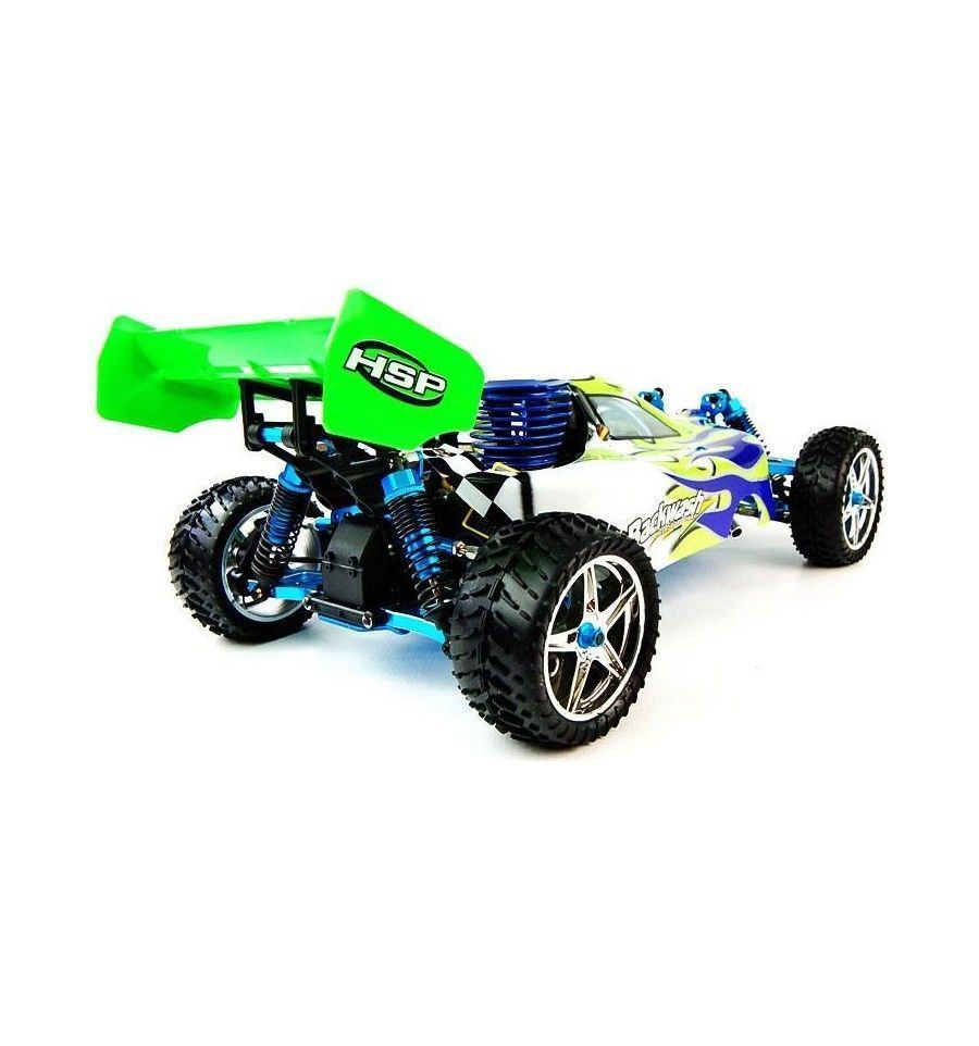 Tomando como base el conocido buggy Backwash de HSP Racing, se han añadido múltiples mejoras y actualizaciones que tendrían un coste muy elevado si se compraran por separado pero manteniendo un precio muy competitivo. Esta versión PRO tiene acabados de aluminio que le dan mayor resistencia y durabilidad, potente motor Team Infinity fabricado en Japón y un carburador que facilita su arranque. Viene con batería de mayor capacidad, cargador y transmisor de 2.4GHz para más velocidad de respuesta y correr sin interferencias con otros modelos. Uno de los buggys RC que más gustan, completamente ensamblado y listo para correr (RTR).