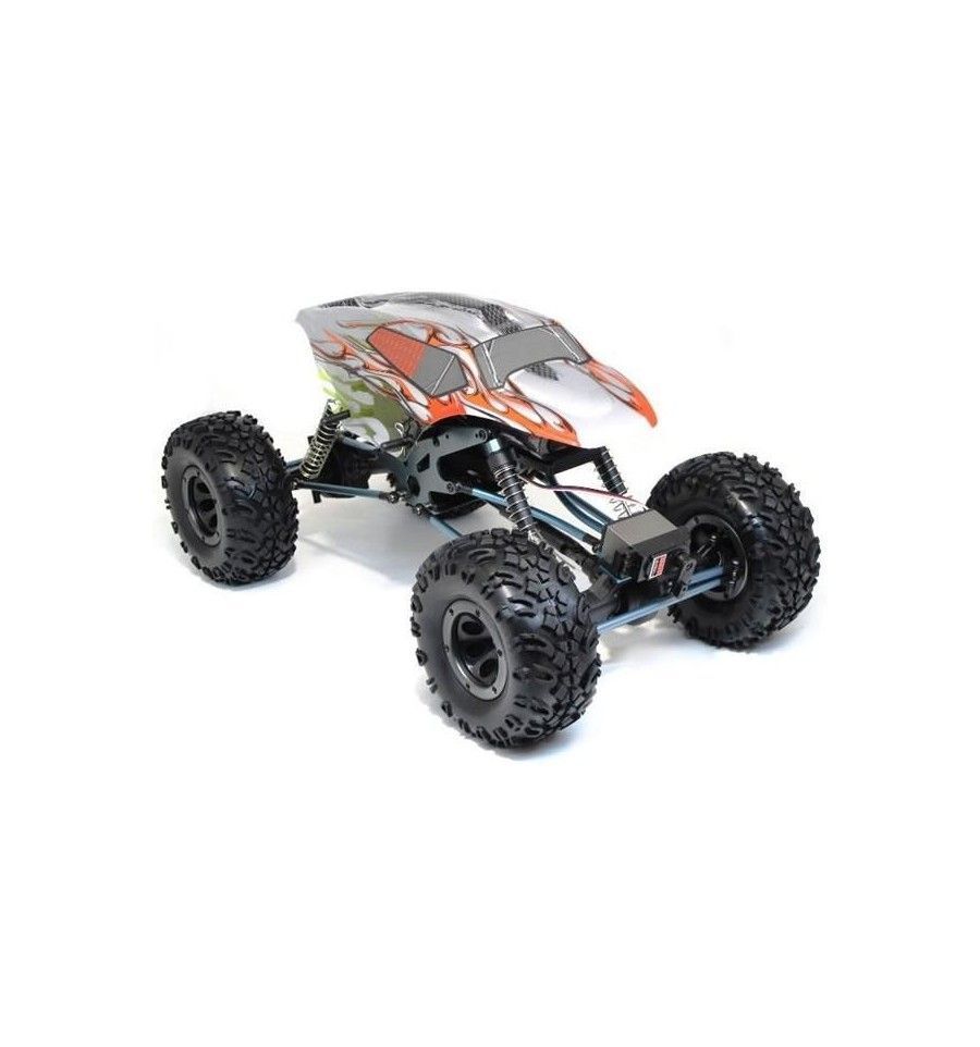 Especialmente diseñado para escalar rocas y superar todo tipo de obstáculos con gran control y eficiencia. Sus neumáticos especiales le aportan un extra de agarre y sus amortiguadores absorben mejor los golpes que los modelos tradicionales. Este crawler de HSP Racing es todo lo que necesitas para alcanzar la cima, simplemente añade las 8 pilas AA del mando y conquista cualquier terreno.