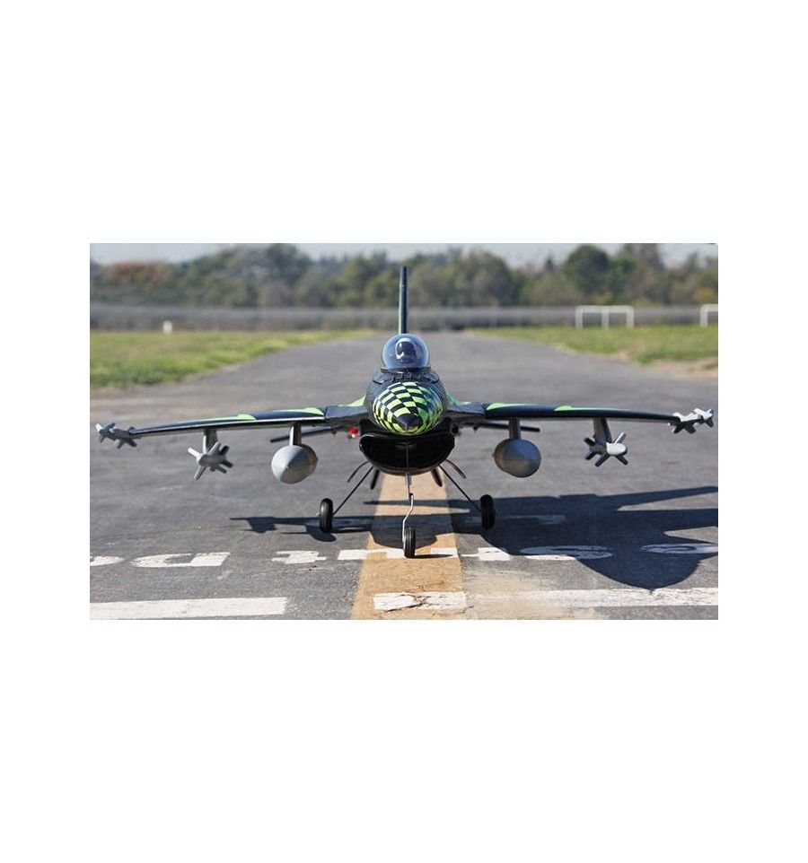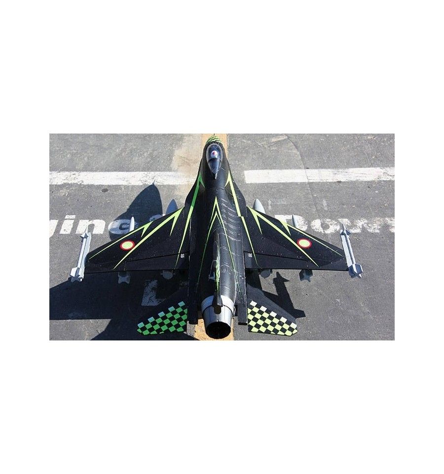 El F-16 también tiene una característica llamada vectorización de empuje. Vectorización de empuje es la capacidad de una aeronave para dirigir el empuje de su motor (s) en una dirección que no sea paralela al eje longitudinal del vehículo. La técnica se utilizó originalmente para proporcionar empuje vertical hacia arriba, como un medio para dar a las aeronaves vertical (VTOL) o corto (STOL) el despegue y aterrizaje de capacidad. Al poco tiempo, se dieron cuenta de que el uso de aviones de empuje en situaciones de combate habilitado vectorizada para realizar maniobras no están disponibles para los aviones con motores convencionales. Uno de los canales RC en este jet le permite cambiar la dirección en la cual el ventilador EDF empuja el empuje, lo que significa que este es uno de los chorros del FED más ágiles que el dinero puede comprar.